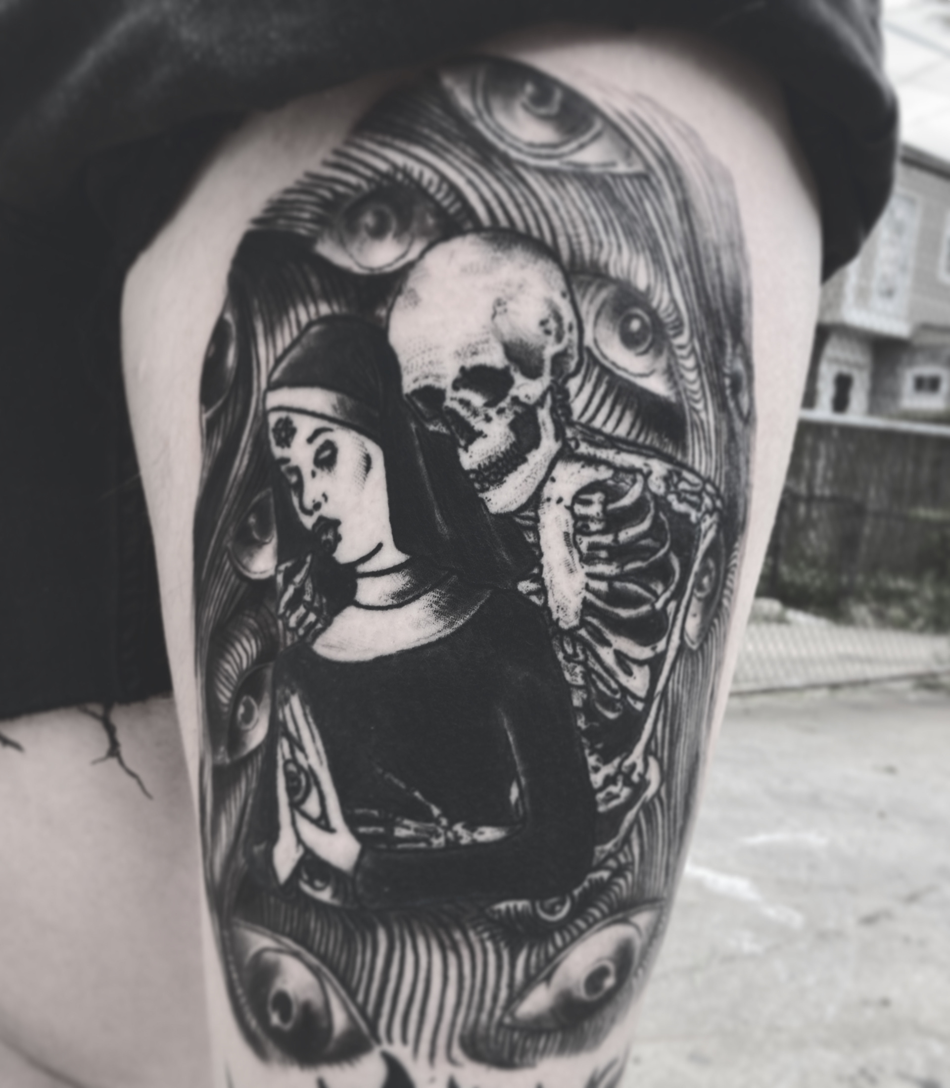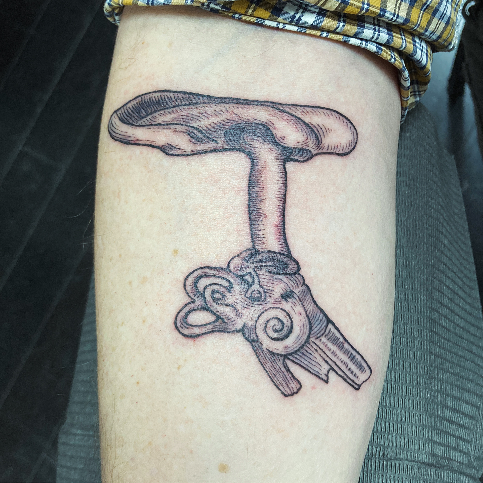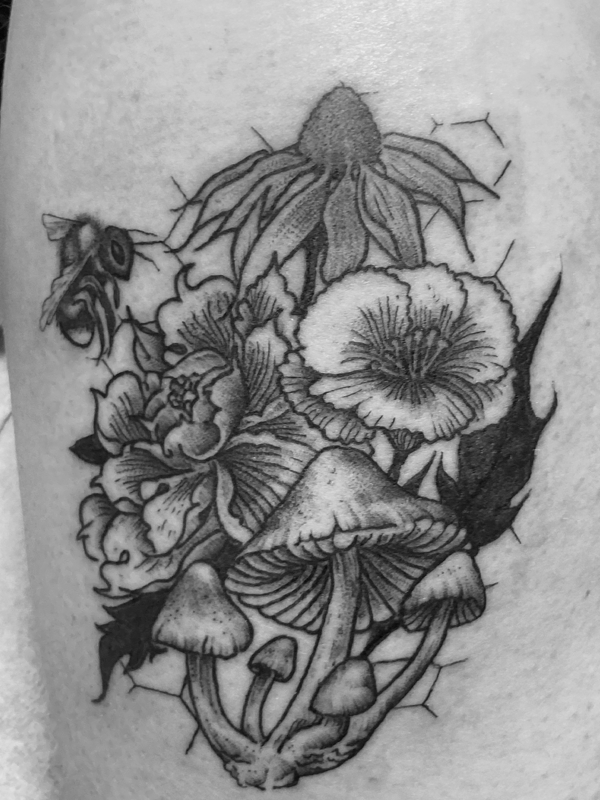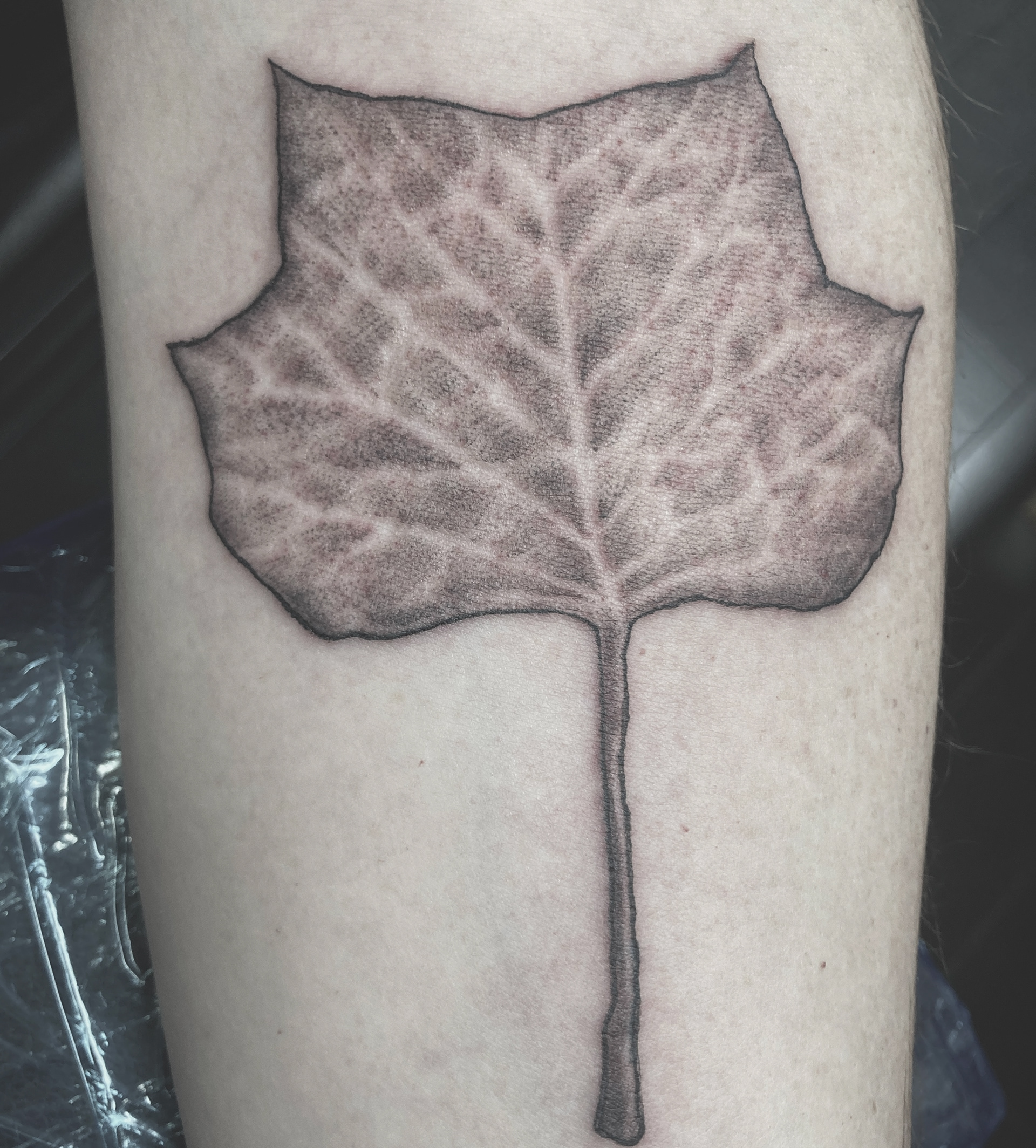 HALEIGH HAS BEEN INTERESTED IN TATTOOING SINCE SHE WAS 7 YEARS OLD. SHE WAS KNOWN TO TRADE MARKER "TATTOOS" IN THE CAFETERIA AT ELEMENTARY SCHOOL. FINALLY GETTING HER APPRENTICESHIP IN 2009 SHE HAS BEEN CREATING CUSTOM AND PICKED ARTWORK EVER SINCE. SHE PREFERS BLACK AND WHITE WITH STIPPLE / HATCH LINE/ BLOCK PRINT SHADING BUT CAN TATTOO IN A WIDE RANGE OF OTHER STYLES. SHE ALSO LOVES DOING HAND WRITING REPLICATIONS AND IS LEARNING HOW TO DO SCAR COVER UPS AND AREOLA TATTOOS FOR BREAST CANCER SURVIVORS. SHE IS ALWAYS TRYING TO LEARN AND GROW AS A TATTOO ARTIST AND KEEPS UP WITH ALL OF THE INDUSTRY STANDARDS FOR CLEANLINESS AND BLOOD BORN PATHOGENS. SHE ONLY USES WAVERLY TATTOO INK AND ALL OF HER EQUIPMENT IS 100% BIODEGRADABLE.